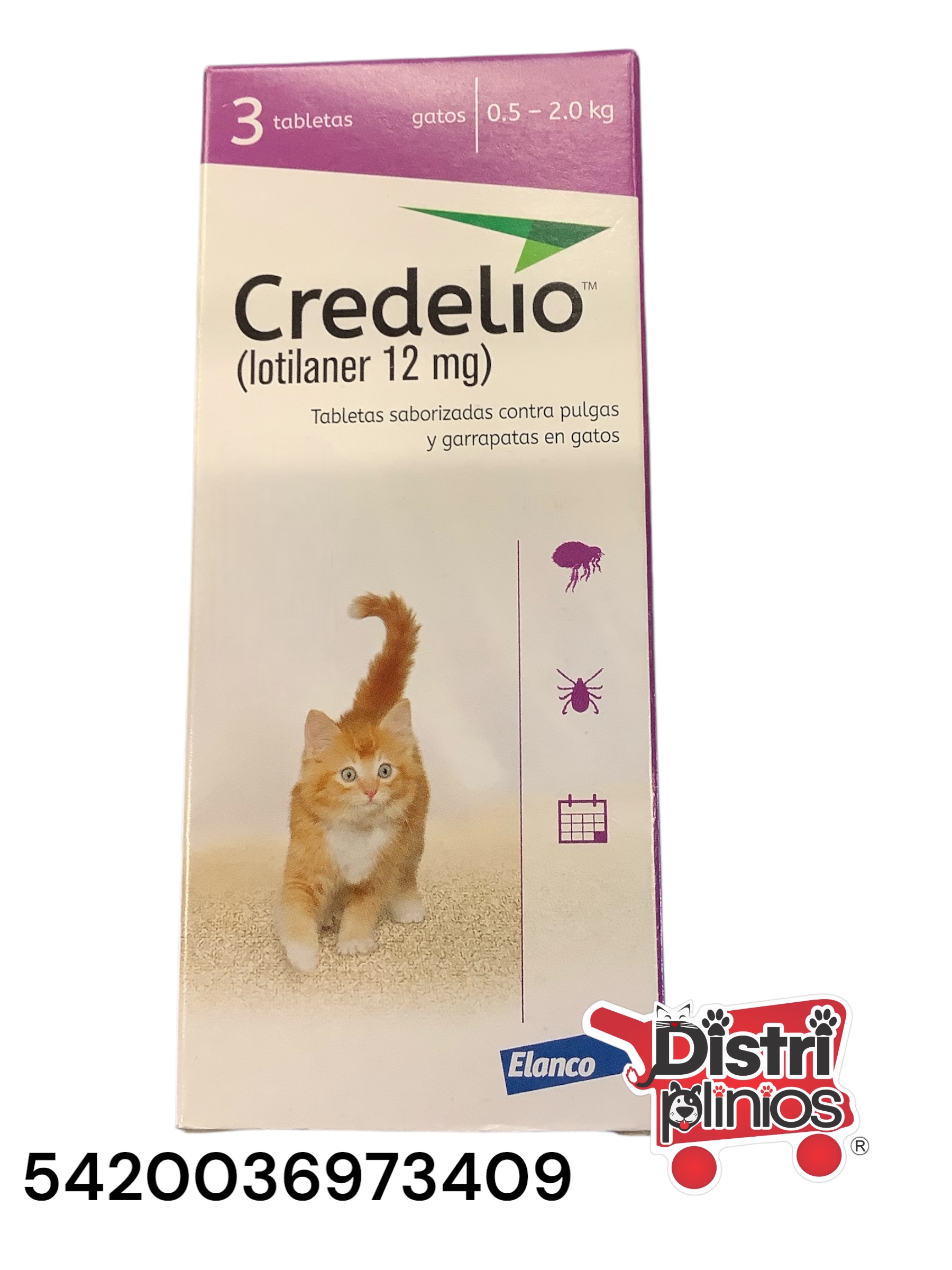 ¡Protección eficaz y segura para tu gato! Credelio es un antiparasitario oral que combate pulgas y garrapatas, especialmente diseñado para gatos de entre 0.5 y 2 kg. Proporciona un control rápido y duradero, cuidando la salud de tu felino. 🐾🐱