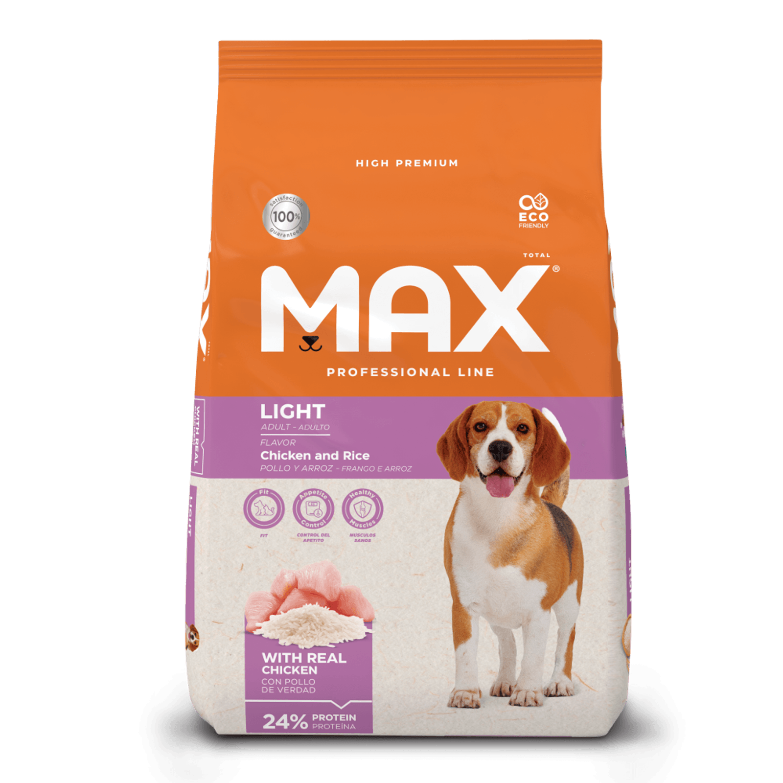 Max Light Pollo & Arroz, es un alimento Premium Especial, cuidadosamente elaborado para el control del peso en perros adultos.
