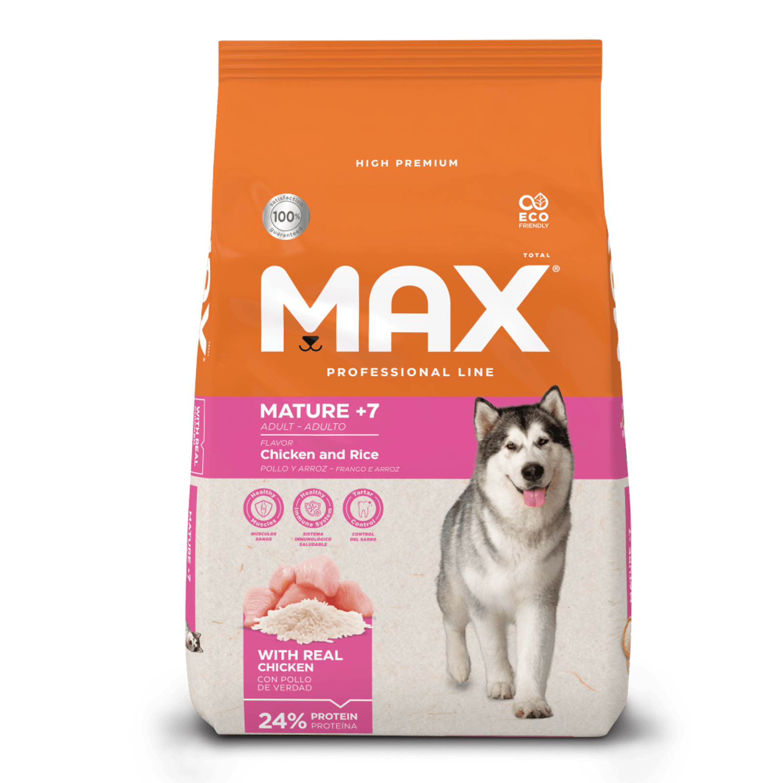 Max Mature +7 Pollo & Arroz, es un alimento Premium Especial nutricionalmente balanceado, desarrollado para perros mayores con más de 7 años de edad.
