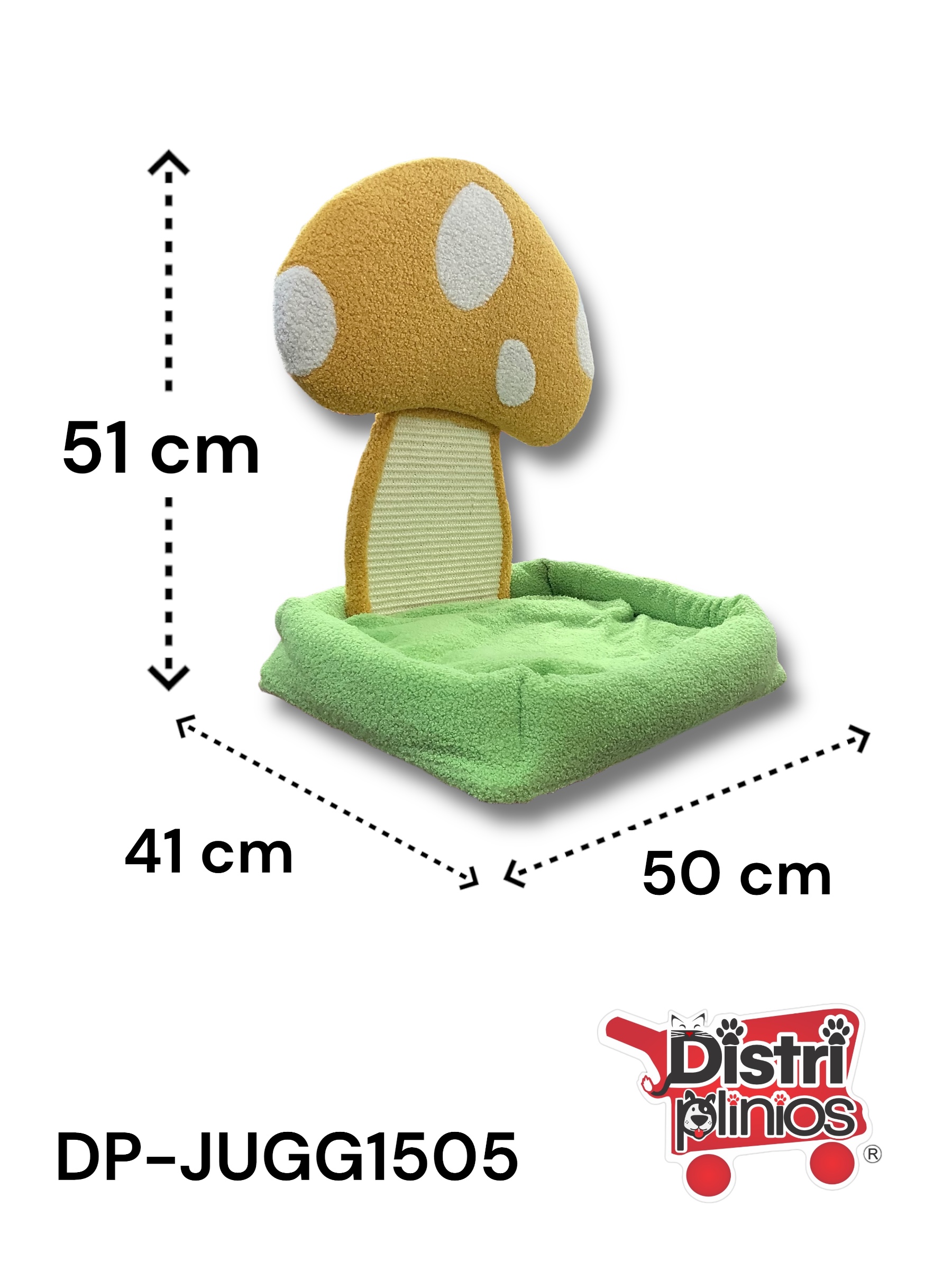 Encantador rascador con diseño de hongo mágico que combina una base acolchada con un divertido poste rascador. Perfecto para que tu gato disfrute de horas de juego, rascado y descanso en un espacio fantástico.
